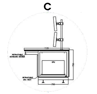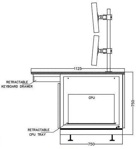 The base module consisting a desk structure for supporting the work surface & upper tier module. The standard base unit shall consist of front & rear hinged doors. The work surface shall be at 750 mm from the bottom of the console frame to ensure maximum comforts to the operator.