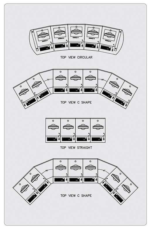 - Each unit in the consoles system shall be shipped fully assembled. The individual units will be located within the control room / operation area, leveled & bolted together.