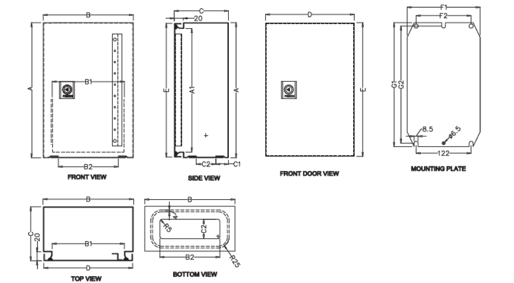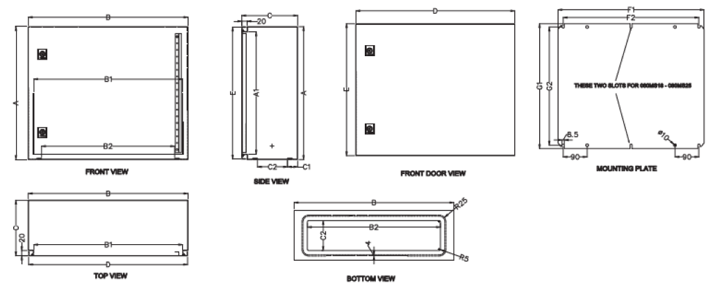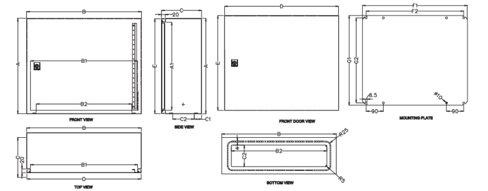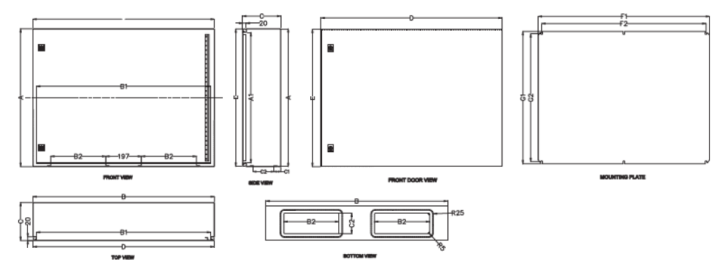 S.N. Product Part No. Size of Box (H×W×D) Mounting Plate Size A A1 B B1 B2 C C1 C2 D E F1 F2 G1 G2