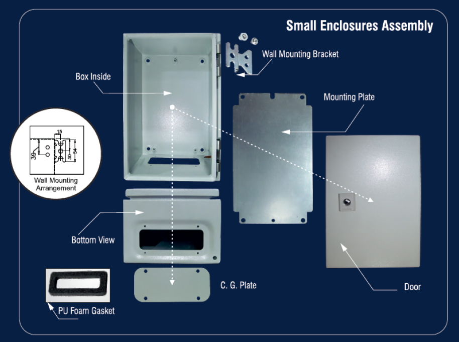Pyrotech is pleased to launch a full range of IP55 / IP65 small enclosures and accessories for indoor as well as outdoor applicable. Small enclosures are suitable for industrial applications in all sectors, factory automation, machine control panel, electrical, CCTV, telecom and many other projects.